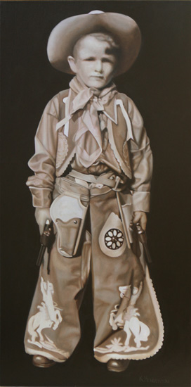 In the not too distant past, before computers and big screen TVs we had small black and white televisions (or so I’ve been told). In the afternoons we watched The Lone Ranger, Zorro, Roy Rogers and a number of other Western Icons. And of course we wanted to grow up to be just like our Western Heroes. The first thing we needed was a cool outfit complete with hat and a pair of Six Shooters. This Buckaroo is wearing all the right stuff for an afternoon of fighting the bad guys. - K. Henderson